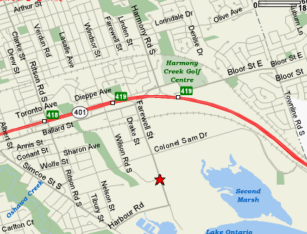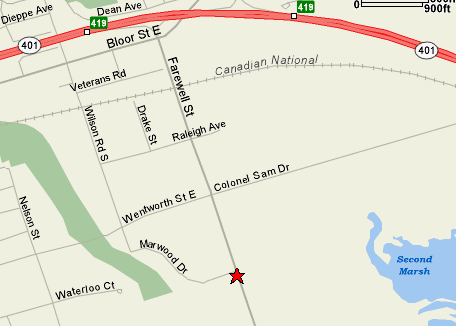 From 401 take Harmony Rd exit, South on Farewell to Marwood Dr